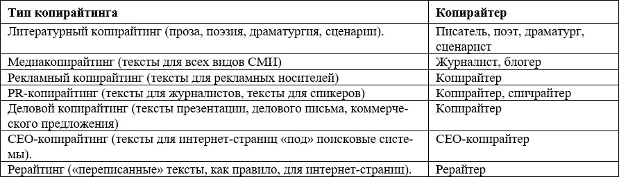 Типы копирайтеров