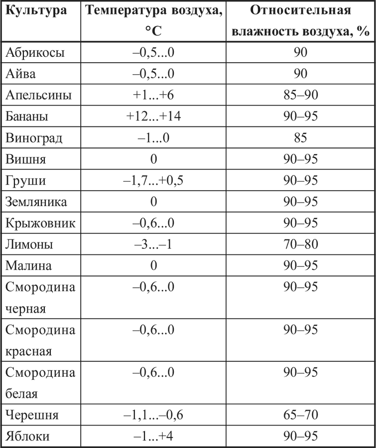 Для хранения большей части плодов рекомендуется влажность воздуха около 95 %.