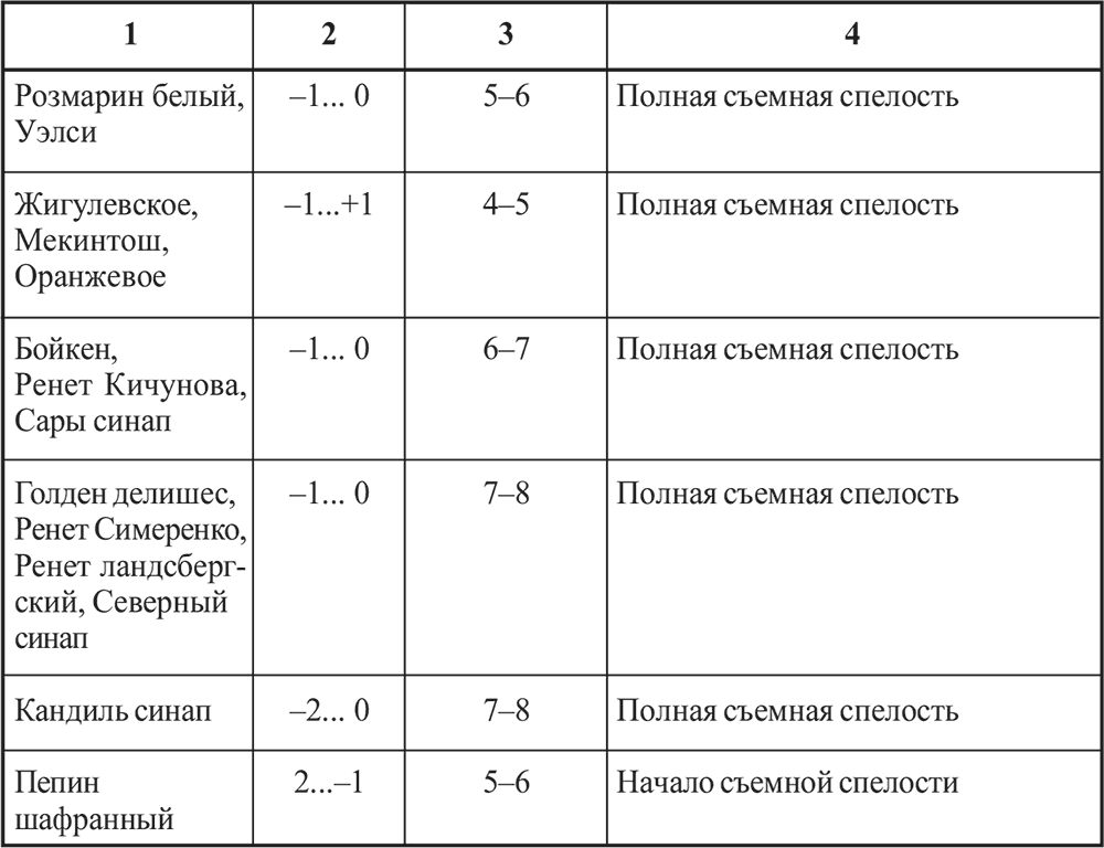 В съемной зрелости убирают осенние и зимние сорта яблок и груш, цитрусовые. Потребительская зрелость наступает у осенних сортов через 2–3 недели, а у зимних сортов – через несколько месяцев хранения.