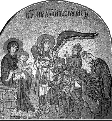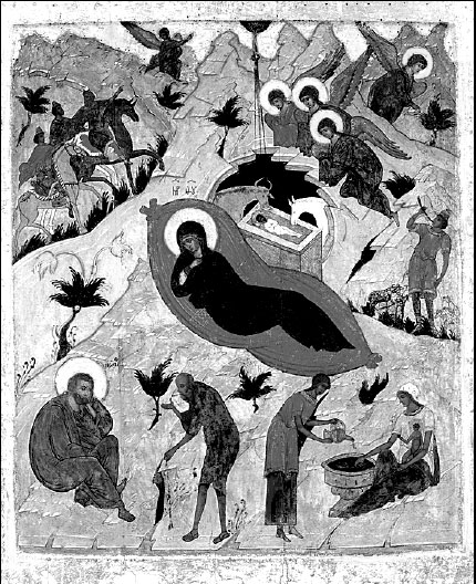 Пречистая Матерь и праведный Обручник с изумлением смотрели на это благоговейное поклонение царей Востока и, внимательно вслушиваясь в их слова о чудесном появлении неведомой звезды, дивились благодатному верованию язычников, дивились и далекому их странствованию. Свет великий осиял ходивших во тьме, и волхвы, снова падши наземь, поклонились Богомладенцу и Его Пречистой Матери.
