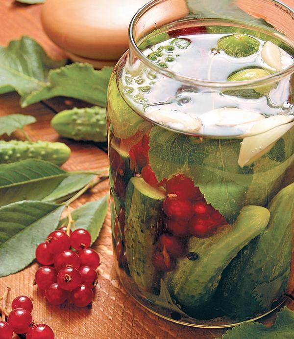 Соленые огурцы с красной смородиной