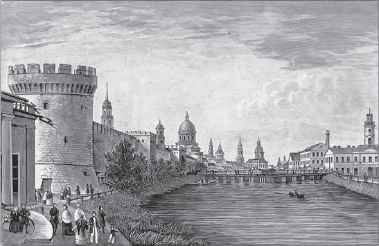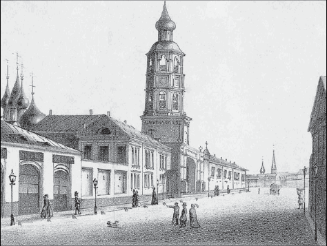 Высокопетровский монастырь в Москве. Литография. 30-е годы XIX века