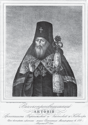Высокопреосвященный Антоний, архиепископ Воронежский и Задонский, при котором обретены мощи святителя Митрофана в 1832 году. Литография 1846 года