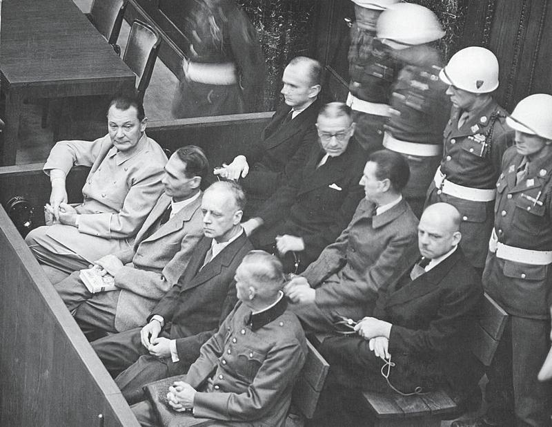 Подсудимые: Г. Геринг, Р. Гесс, И. фон Риббентроп, В. Кейтель, К. Дёниц, Э. Редер, Б. фон Ширах, Ф. Заукель.