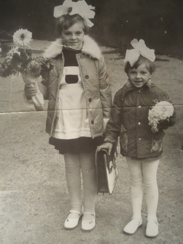 Пролетели два года,Сентябрь, число первое,Стоит чудесная погода,Рада за детей, наверное.На пороге школьномСнова две сестрицы,Сияют, довольные,Обе – ученицы!Вера – третьеклассница,На «пятёрки» учится,Юля – первоклассницаИ у неё также получится.И портфелики что надо,Взгляд довольный стрел-ресницЗдравствуй, школа, очень рады,Встречай новых учениц!Уроки