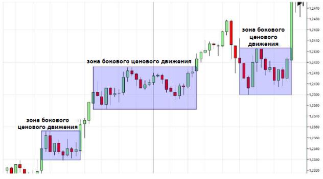 Ниже вы можете видеть график цен, на котором я отметил все значимые области бокового ценового движения.