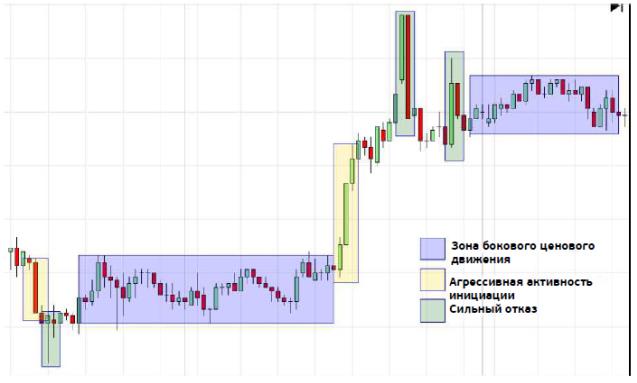 Помните, что сильные трендовые зоны или быстрые движения цен ВСЕГДА вызываются агрессивными покупателями или продавцами. Именно агрессия организаций двигает цену вверх или вниз.