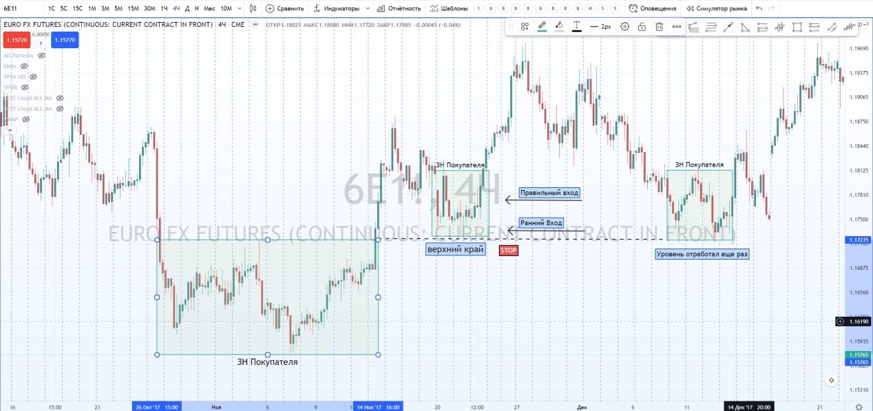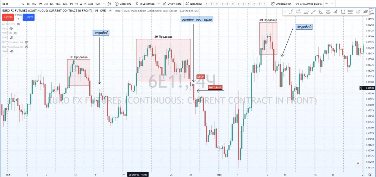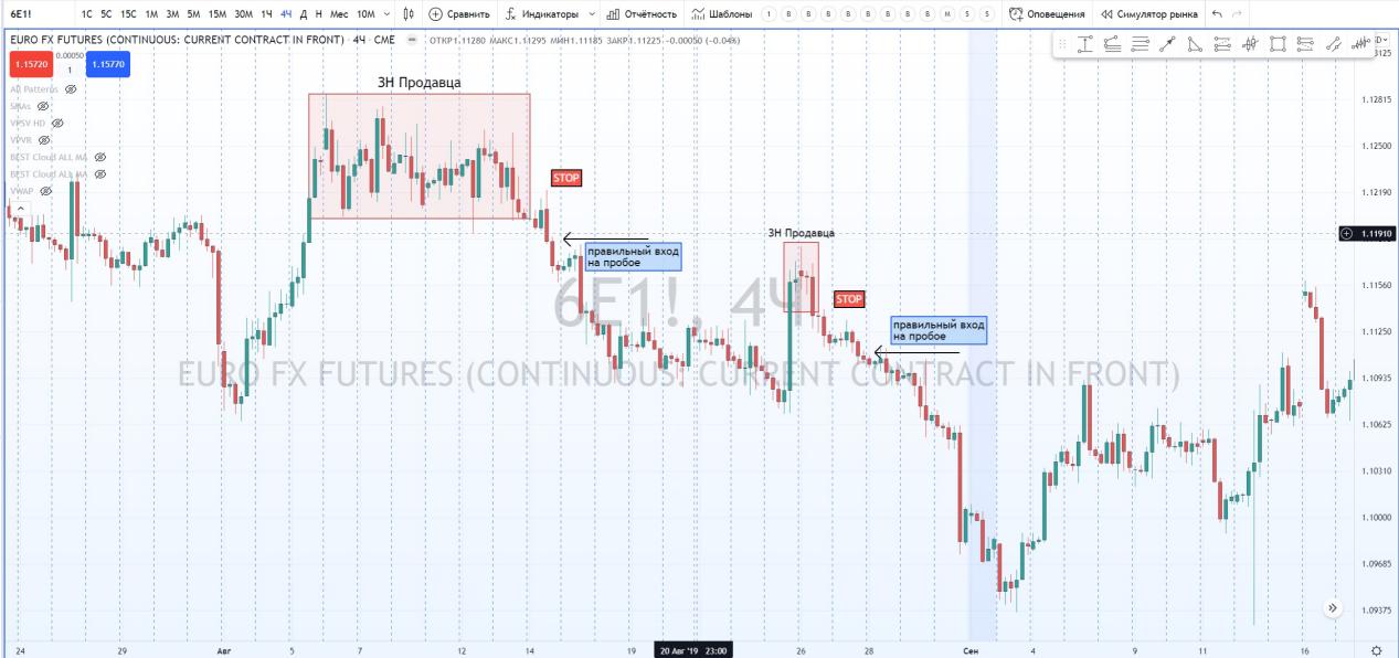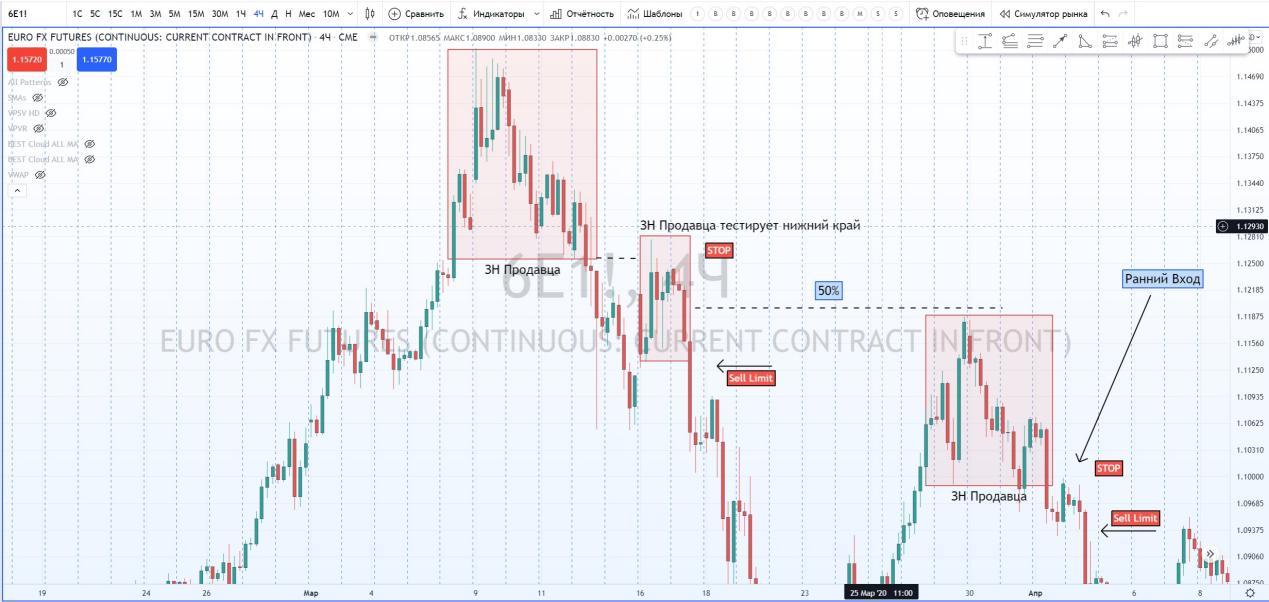 Но лучше использовать технику безопасного входа после образования ЗН Продавца. Стоп в данном случае можно перенести за хай этой зоны.