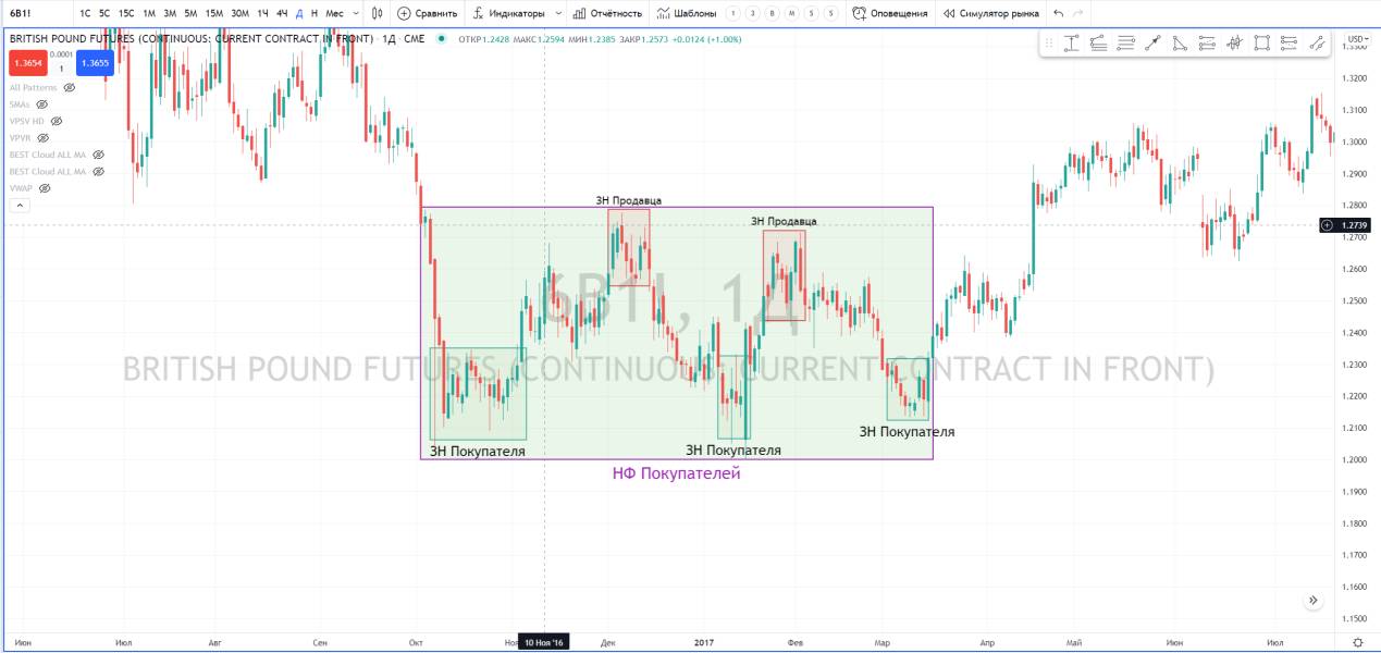 Но важно, чтобы Вы научились определять ЗН внутри других более крупных ЗН на старшем таймфрейме.