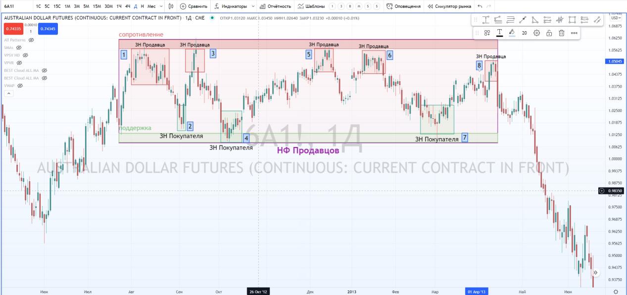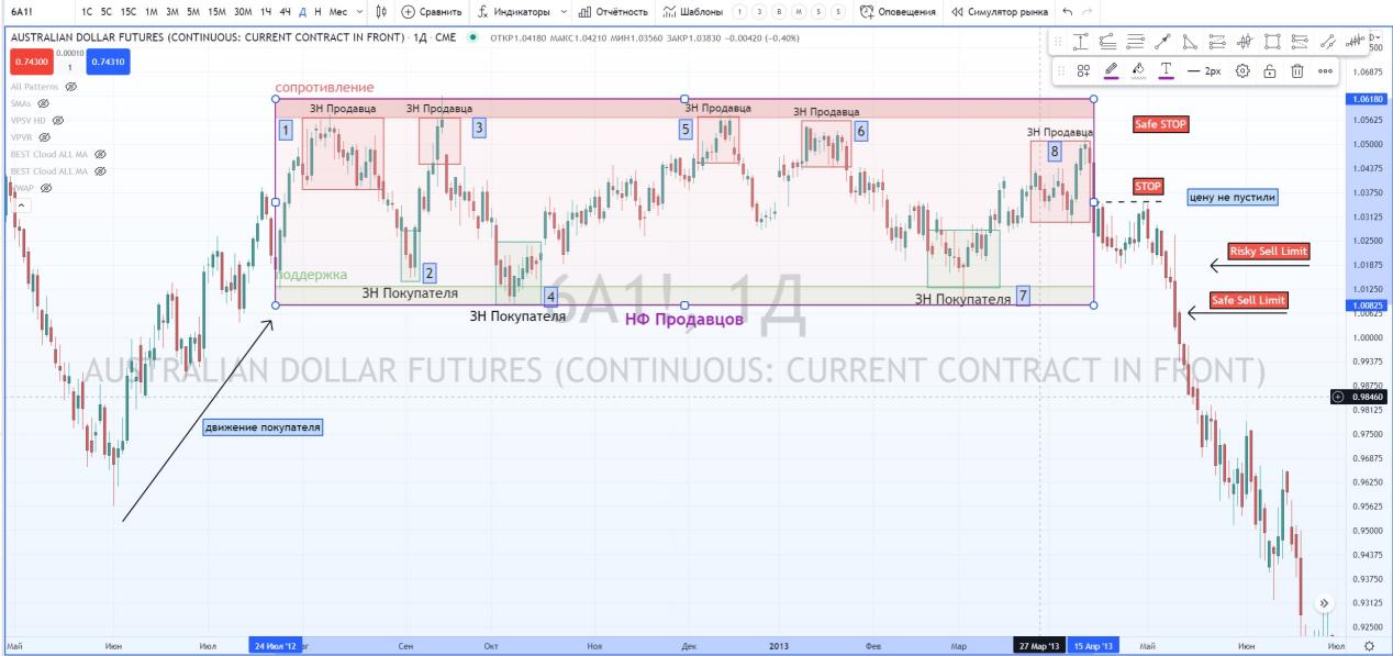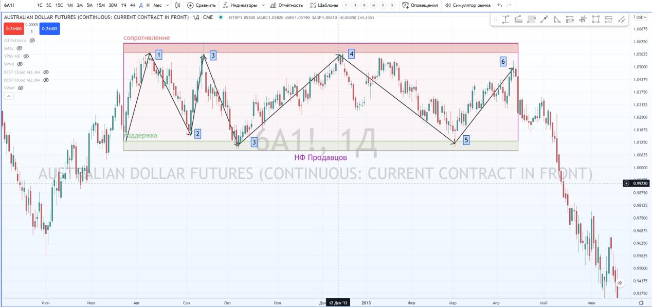 Вернемся к флету продавцов на фьючерсе австралийца.