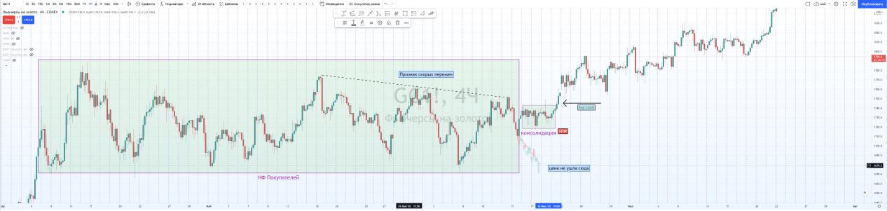 Да, в данном примере мы не видим реализацию и уход вверх в покупки, но это, скорее, исключение, чем правило!