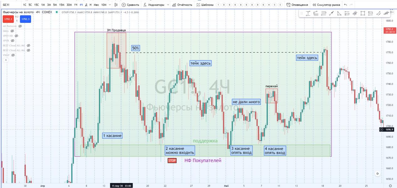 Отличный пример на фьючерсе золота.