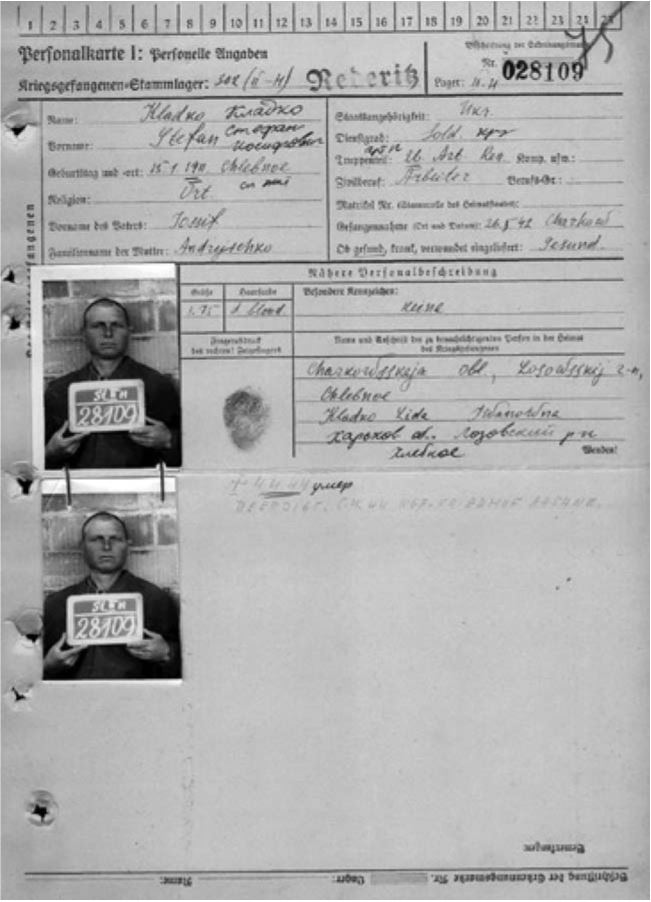 Личная карточка опознанного военнопленного, похороненного в Осане.