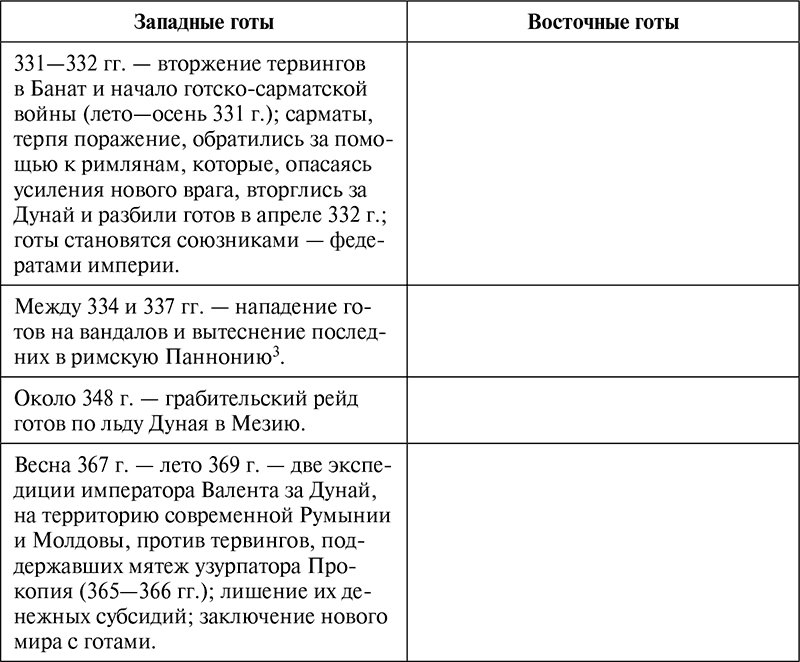 291 г. – к этому году готы раскололись на два народа: живших к востоку от Днестра гревтунгов (остроготов) во главе с королевским родом Амалов и на тервингов (визиготов), возглавляемых Балтами и живших у Нижнего Дуная[35].