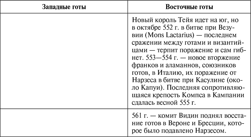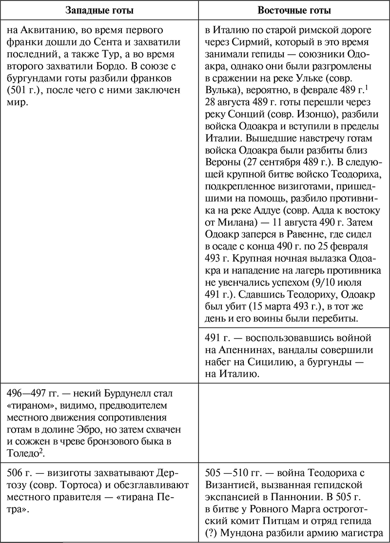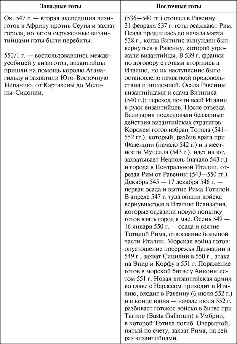 Положение готского социума изменилось с образованием государств в Италии, Галлии и Испании. Теперь племенная структура наложилась на государственную, создав определенный симбиоз. Племенной предводитель теперь стал еще и правителем своих новых подданных-«римлян», которые рассматривали нового короля как наследника императорской власти. Готы стали привилегированной нацией, обязанной служить в армии[49]. В первой четверти V в. визиготы, оказавшись в среде католического римского населения Галлии, пытались сохранить свою этническую идентичность: в первую очередь религию-арианство, язык, обычаи и т. д., что нашло свое отражение в кодексе короля Эвриха (466–484 гг.), проводившего политику этнической сегрегации и запретившего даже смешанные с римлянами браки[50]. С другой стороны, в Италии готское руководство до войны с Юстинианом придерживалось, в общем, политики паритета между обоими народами и межнациональные браки не были редкостью[51]. Поскольку войско состояло из готов, то и военным языком был готский, именно на нем отдавали приказания (Procop. Bel. Goth., I,10,10). Однако письменные приказы в Италии писались на латыни, о чем красноречиво свидетельствуют Variae Кассиодора, и они должны были пониматься остроготами. В Испании же готский язык существовал дольше, но, как считается, выходит из употребления к началу VII в., когда визиготское этническое меньшинство ассимилируется с испаноримлянами[52]. Очевидно, к этому времени и языком армии стал латинский.