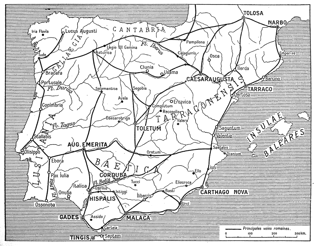 Карта вестготской Испании. Воспроизведено по: Le€vi-Provençal E. Histoire de l’Espagne musulman. T. I. Leiden, 1950. P. 4.
