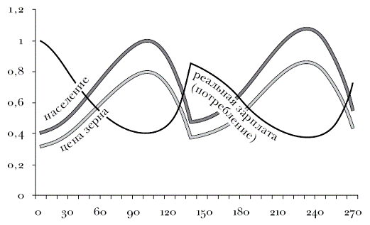 В монографии «Демографически-структурный анализ социально-экономической истории России» автором был проведен соответствующий анализ для двух циклов российской истории (первый из них закончился «Великой Смутой», а второй – революциями 1905–1917 годов). При этом было показано, что практически все описанные выше характерные признаки различных фаз демографического цикла реально фиксируются историческими источниками.[36]