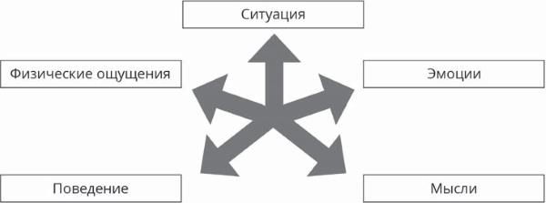 Ситуации, с которыми мы сталкиваемся в повседневной жизни, вызывают у нас эмоции, мысли, физические ощущения и ответное поведение. Эмоции обычно можно определить одним словом: печаль, тревога, вина, стыд, гнев, отвращение, удивление или восторг. Мысли – это устные утверждения в нашей голове, которые часто возникают автоматически («Что, если мне не на что будет жить на пенсии?» или «Почему у меня болит бедро?»). Поведение – это действия, которые мы совершаем или не совершаем (идем на прогулку или не берем трубку). Физические ощущения могут сопровождать эмоции или становиться их причинами и выражаться в учащенном сердцебиении, мышечном напряжении или апатии.