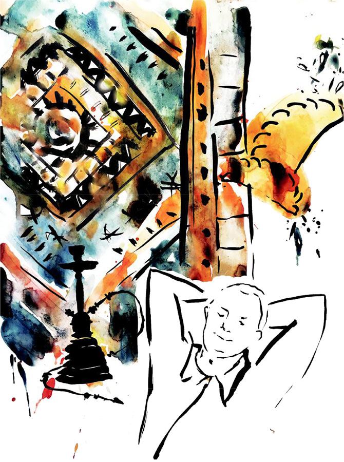 Темень мусульманской ночи с серпиком луны и огни городов. Гомон огромных базаров, запахи парфюмерных лавок, кальянных курилен. Вкус лепёшек на верблюжьем молоке и жареной рыбы. Богатство, блеск и роскошь здесь соседствует с безумной нищетой. Всё это трудно укладывается в голове, но я вижу это сквозь выдыхаемый дым, который фигурами арабской вязи наполняет мою комнату. Под такое блаженство я даже стих сочинил, запутавшись в визионерских импрессиях, глядя на настенный ковёр сквозь ароматный туман.