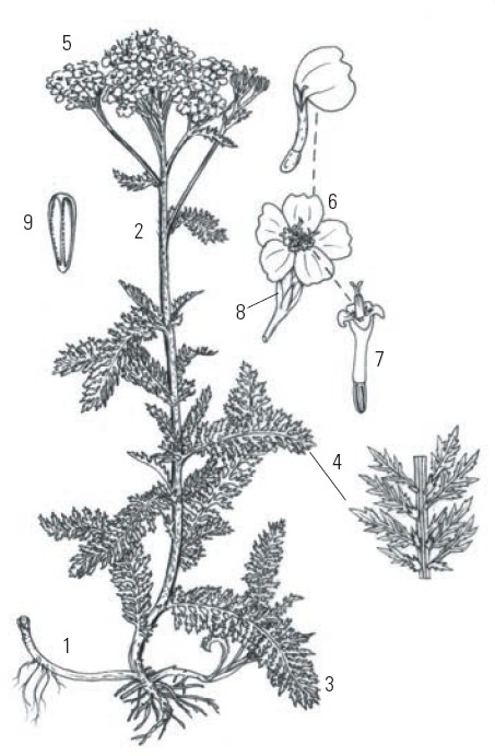 9 Die Früchte der Schafgarbe sind ohne einen der Windverbreitung dienenden Haarkranz ausgebildet.