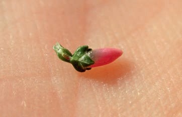 Hier sind der geschlossene violette Kelch und der grüne Außenkelch gut zu erkennen.
