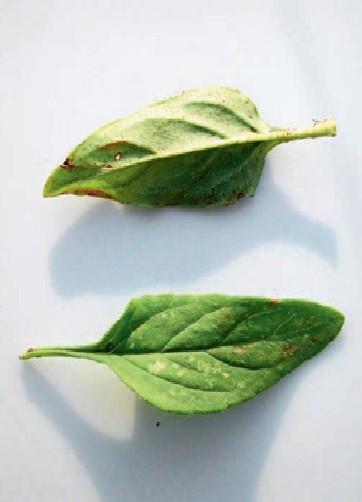 5 Die Blattunterseiten sind blau- bis graugrün (a), die Oberseiten dunkelgrün (b).
