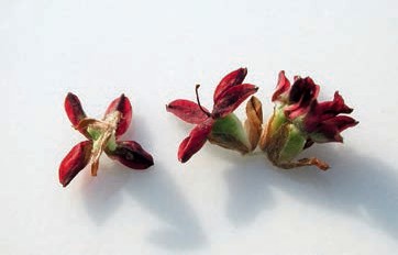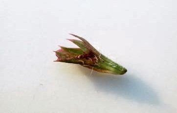 8 Der blütenblattähnliche Blütenkelch läuft in 4 braunrote Zipfel aus.