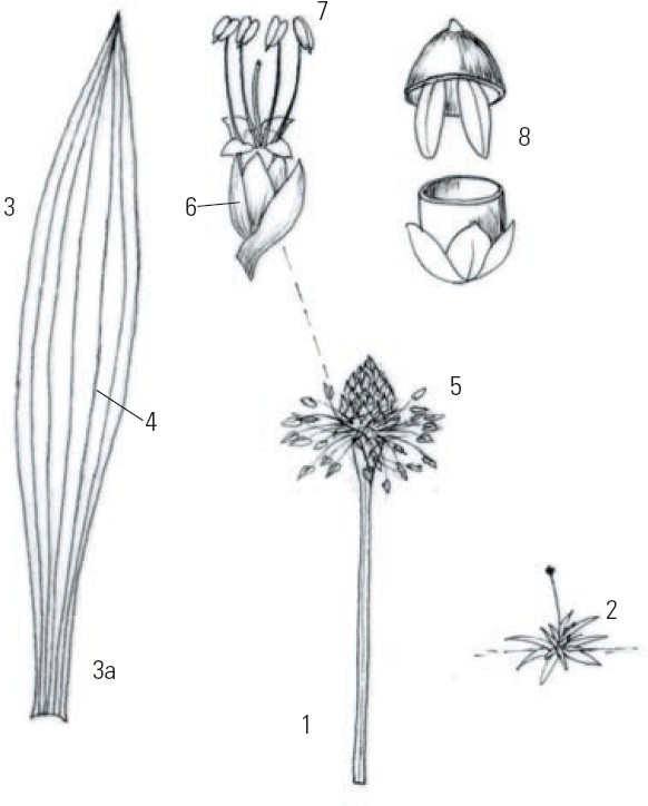 5 Der Blütenstand ist eine vielblütige, eiförmige bis kurz-zylindrische Ähre.