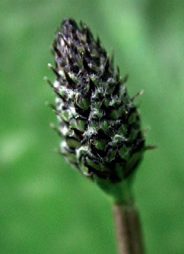 Der knospige Blütenstand vor der Blüte erscheint durch schwärzliche Schuppen dunkel.