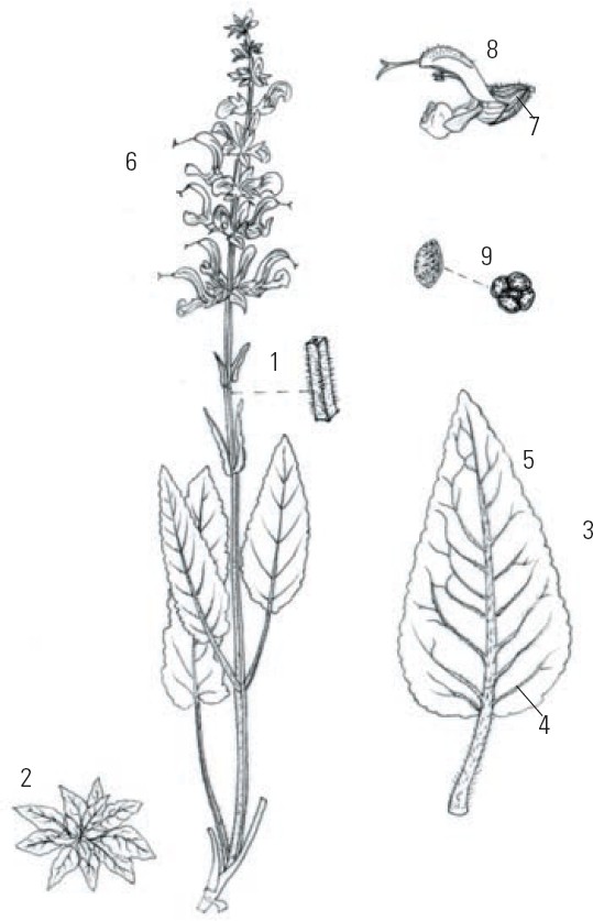 1 Die kräftigen, locker behaarten Stängel stehen meist aufrecht, sind im Bereich des Blütenstandes oft verzweigt und im Querschnitt vierkantig.