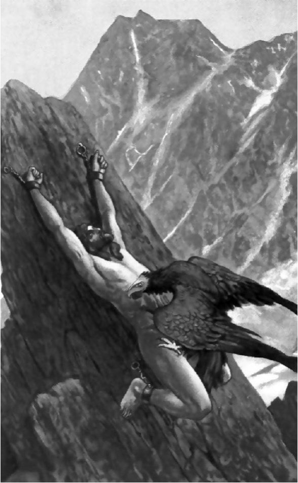 Aradan yüzlerce yıl geçtikten sonra, görkemli kahraman Herkül Kafkas Dağları’na geldi. Sarp kayalıklara tırmanarak en tepeye çıktı, acımasız kartalı öldürdü ve kuvvetli darbeleriyle insanın dostunu bağlayan zincirleri kırdı.