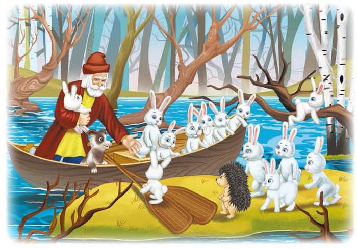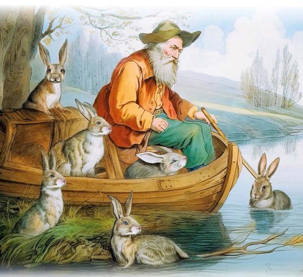 В лодке поехал – их много с рекиК нам в половодье весной нагоняет, —Еду, ловлю их. Вода прибывает.Вижу один островок небольшой —Зайцы на нём собралися гурьбой.С каждой минутой вода подбираласьК бедным зверькам; уж под ними осталосьМеньше аршина земли в ширину, Меньше сажени в длину.Тут я подъехал: лопочут ушами,Сами ни с места; я взял одного,Прочим скомандовал: прыгайте сами!Прыгнули зайцы мои, – ничего!