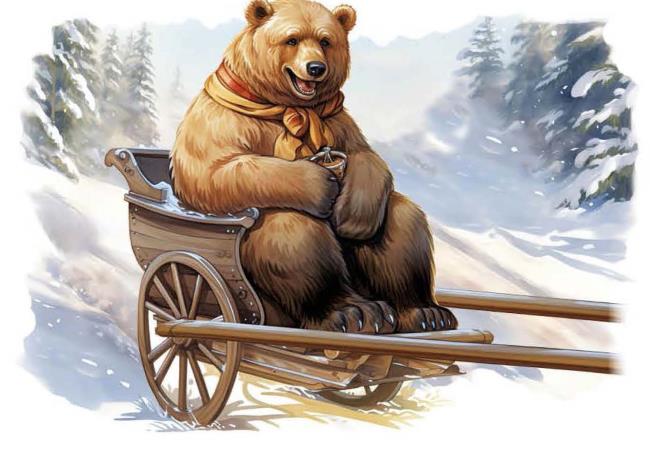 Дело под вечер, зимой, И морозец знатный.По дороге столбовойЕдет парень молодой, Мужичок обратный;Не спешит, трусит слегка; Лошади не слабы,Да дорога не гладка — Рытвины, ухабы.Нагоняет ямщичок Вожака с медведем:«Посади нас, паренёк, Веселей доедем!»– «Что ты? с мишкой?» – «Ничего! Он у нас смиренный,Лишний шкалик за него Поднесу, почтенный!»– «Ну, садитесь!» – Посадил Бородач медведя,Сел и сам – и потрусил Полегоньку Федя…Видит Трифон кабачок, Приглашает Федю.«Подожди ты нас часок!» — Говорит медведю.И пошли. Медведь смирён, Видно, стар годами,Только лапу лижет он Да звенит цепями…Час проходит; нет ребят, То-то выпьют лихо!Но привычные стоят Лошадёнки тихо.Свечерело. Дрожь в конях, Стужа злее на ночь;Заворочался в санях Михайло Иваныч,Кони дёрнули; стряслась Тут беда большая —Рявкнул мишка! – понеслась Тройка как шальная!Колокольчик услыхал, Выбежал Федюха,Да напрасно – не догнал! Экая поруха!Быстро, бешено неслась Тройка – и не диво:На ухабе всякий раз Зверь рычал ретиво;Только стон кругом стоял: «Очищай дорогу!Сам Топтыгин-генерал Едет на берлогу!»Вздрогнет встречный мужичок, Жутко станет бабе,Как мохнатый седочок Рявкнет на ухабе.А коням подавно страх — Не передохнули!Вёрст пятнадцать на весь мах Бедные отдули!