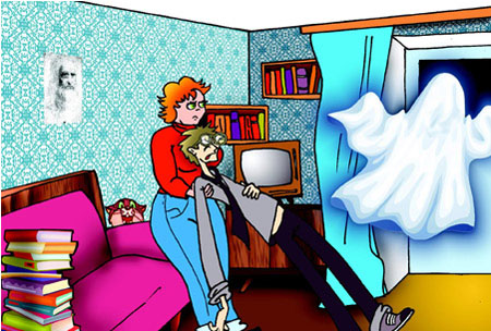 …Мишка вздрогнул, когда дверь квартиры вдруг неожиданно хлопнула. Зажёгся свет, а в прихожей раздались приглушённые голоса. «А это ещё кто?!» – в ужасе подумал Козлов и, забыв, что он невидимый, нырнул под диван. Туда же юркнула серая кошка, удивленно вытаращила зелёные глаза и примостилась рядом.
