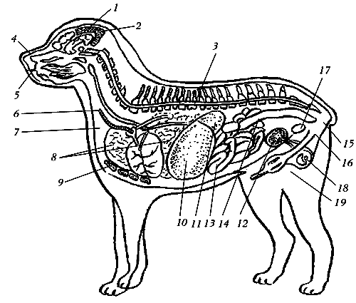 При изучении анатомических особенностей собаки необходимо ознакомиться и с расположением и строением ее внутренних органов.