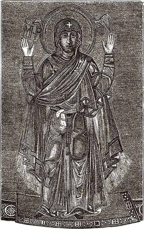 Полуфигура Христа. Фреска Георгиевской церкви в Старой Ладоге