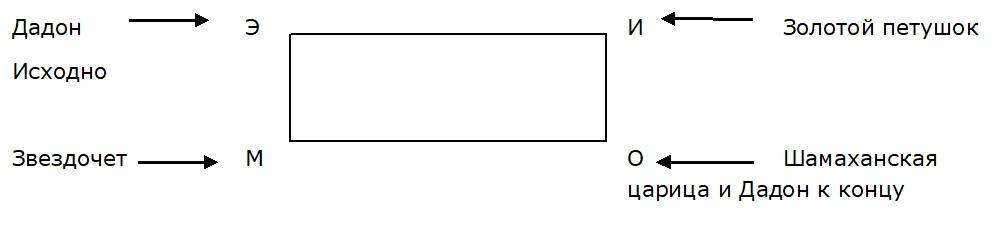 Итак, исходно, до появления золотого интуитивиста, мы видели эмоционального интроверта. (Рискнем предположить, что второй его ведущей функцией было мышление. Все же воевал-то он успешно.) Побыв какое-то время – вынужденно – экстравертом, личность эта получает в качестве второй ведущей функции, протеза – интуицию. От чужой, конечно, мудрости. Но мы ведь договорились и эту мудрость тоже считать «своей» – коли у личности хватило мудрости принять совет ума чужого. Какое-то время ведущей будет интуиция. А мышление лишь «отрабатывает» ее данные. Ощущения пока что сводятся к самому простому – «лежа на боку». Однако побыть интровертом Дадону удалось недолго, а его эмоции вновь стали ведущими. Меняется ситуация – «плывет» вслед за ней и личность.