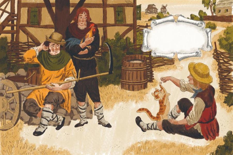 – Вы знаете, дети, что у меня нет другого богатства, кроме бедного дома, кота, петуха и косы. В доме живите, а из этих трех вещей пусть каждый возьмет себе одну. Не ссорьтесь, будьте всегда дружны между собой, и господь вас не оставит.