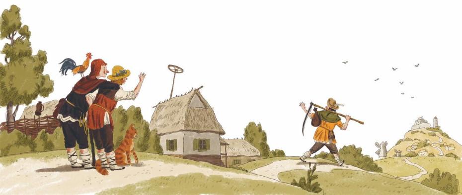 Так Мартин делал день за днём, пока весь луг не скосил. Как закончил, пошёл к королю за платой, с косой на плече.