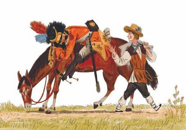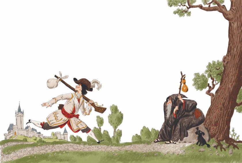Братья опять ему напомнили, чтобы уходил подальше, где ещё дураки не перевелись: в Чехии ему за кота ничего не дадут. Михал сунул кота в мешок и пошёл. Ходил-ходил, наконец пришёл в такую землю, где он людей и понять не мог, однако пока до главного города добрался – научился немного их языку. У ворот повстречался ему прохожий и давай выспрашивать, что у него в мешке.