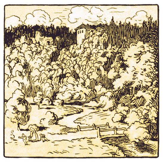Бабушка и ее внучата все шагали себе да шагали и наконец добрались до замшелых развалин Ризенбургского замка, что виднелись среди деревьев.