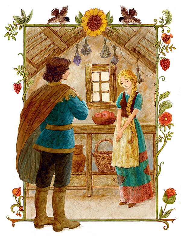 Переночевал принц в лесной избушке, а на утро решил отправиться в обратный путь. Но вместо того – остался на день, чтобы помочь старику смастерить для Хельги меховые башмаки. А потом ещё на неделю. Крыша в тереме совсем покосилась. Как её не поправить? Так зима прошла.