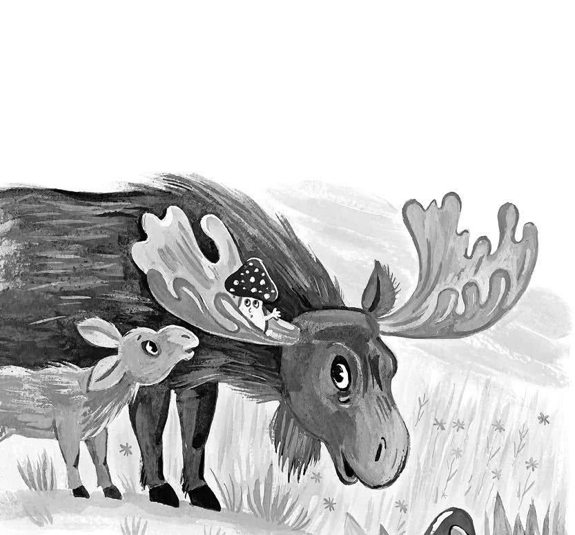 Но тут в соседних кустах послышался треск, и на опушке появилось уважаемое семейство лосей – великанов леса. Грибы почтительно склонили шляпки, приветствуя могучих соседей. Но лоси не ответили на поклон, они были очень взволнованы и что-то усердно искали.