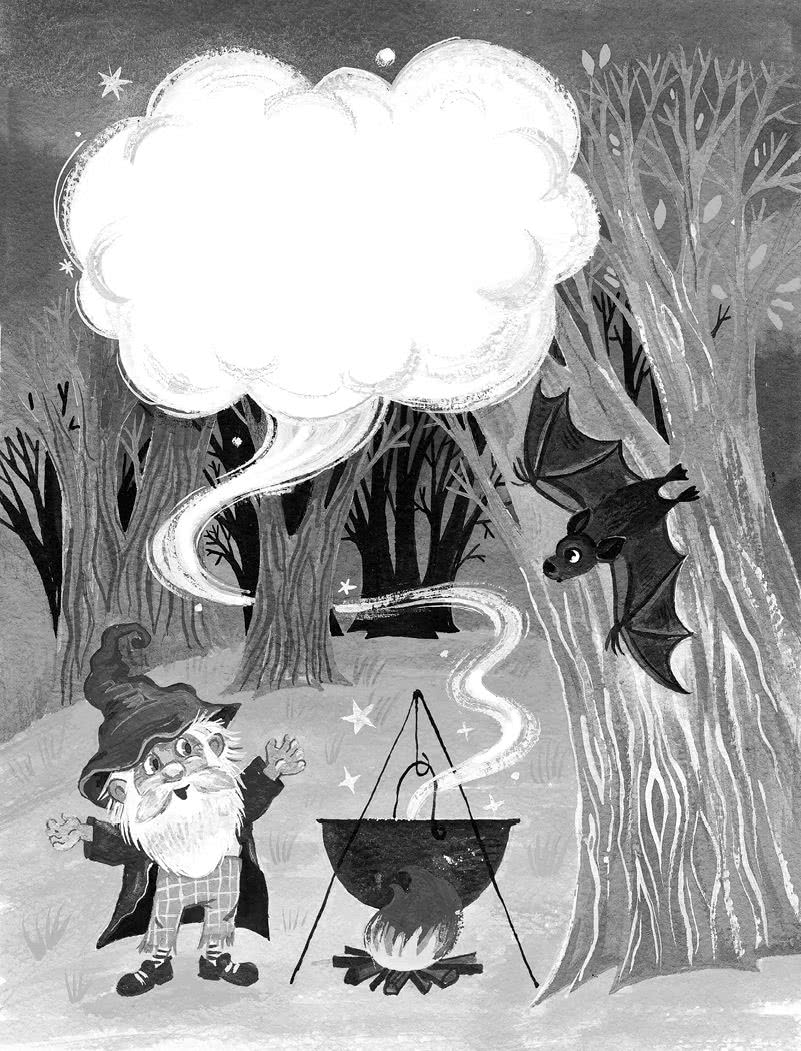 Он отстегнул от щенка хвост, четыре лапы, срезал пушистый мех и бросил всё в магический котёл. Произнёс заклинание и перемешал. Когда дым рассеялся, он достал огромные кожаные крылья, похожие на плащ.