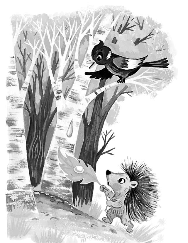 – Спасибо за науку! – поблагодарил ёж дятла, обнял берёзку и побежал обратно – лечить старую ворону берёзовым соком.