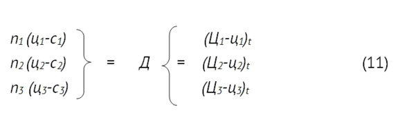(Ц1-ц1) t = n1 (ц1-с1) =n2 (ц2-с2) =…,