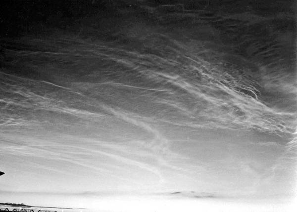 Вот выписка из энциклопедии: «Серебристые облака (также известны как мезосферные облака) обычно наблюдаются в летние месяцы в широтах между 50-м и 60-м градусами (северной и южной широты). Это самые высокие облака в атмосфере Земли; образуются в мезосфере на высоте около 85 километров и видны только тогда, когда освещены солнцем из-за горизонта, в то время как более низкие слои атмосферы находятся в земной тени; днем они не видны. При этом их оптическая плотность настолько ничтожна, что через них зачастую проглядывают звезды».