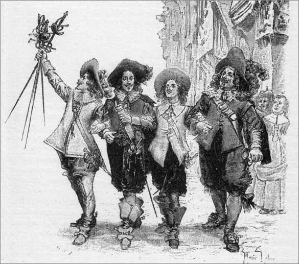 Атос не носил титула графа де ля Фера, как у Дюма. Он был всего лишь потомком состоятельного буржуа, купившего себе дворянское звание. А об Арамисе известно только то, что его отец служил квартирмейстером мушкетерской роты. Так что наши герои не принадлежали к родовитому дворянству, но великолепно владели шпагой, обладали отменным мужеством и чувством товарищества.