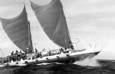 С тех пор как они перестали полностью полагаться на ветра и течения, они начали строить – двойные каноэ, или «катамараны» (малайское слово). Капитан Кук с удивлением сообщал, что вожди Тонга с легкостью буквально нарезали круги вокруг его корабля, даже когда судно шло отлично, подгоняемое легким бризом. Идя под парусами при благоприятном ветре, такие каноэ могли покрывать 160 – 240 км в день, а благодаря способности полинезийцев сохранять еду в течение долгого времени, расстояние в 8000 км было вполне осуществимо.