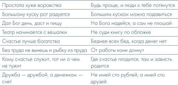 Простые примеры «здравого смысла» – это пословицы и поговорки, фразеологизмы и устойчивые выражения – в общем, то, что мы относим к народной мудрости, – которые формировались веками и были основаны на жизненном опыте человечества. Как часто в реальной жизни мы слышим такую апелляцию к здравому смыслу: «Старый друг лучше новых двух», «Лучше синица в руке, чем журавль в небе», «Кто не рискует, тот не пьет шампанское». Для огромного числа людей это не просто пласт культуры, это целые жизненные сценарии, готовые руководства к действию, принципы, которые руководят решениями. Но может ли народная мудрость быть ошибочной?